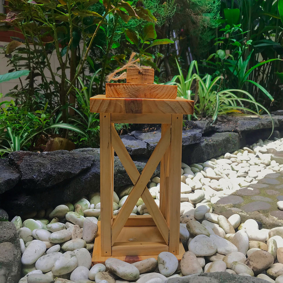 Lentera yang berbahan dasar kayu, menambah kesan yang khas dan kuat. Bisa digunakan sebagai hiasan juga bisa sebagai penerangan.